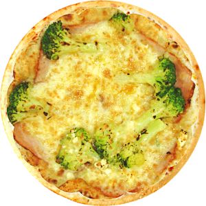 Alho, Brócolis, Calabresa, Champignon, Molho de tomate, Muçarela, Orégano, Ovo