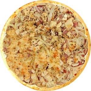 Bacon, Cebola Crispy, Cheddar, Frango desfiado, Molho de tomate, Muçarela, Orégano